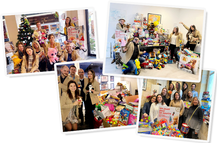 Depuis quelques années, dans le cadre de leurs activités professionnelles qui amènent les agents immobiliers CENTURY 21 à rencontrer régulièrement les habitants de leur ville, un grand nombre d’agences du réseau (dont CENTURY 21 Ricard Immobilier) a pu, grâce aux liens de proximité que celles-ci ont avec les familles, collecter des jouets et les offrir aux enfants d’origine modeste.